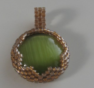 tekniikoita ja helmiä. Vihreä 17 mm kissansilmä ja
