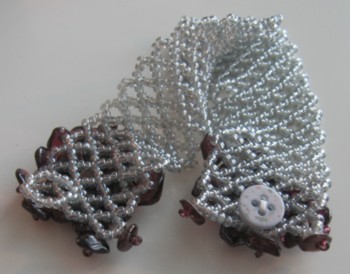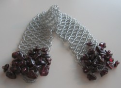 Garnet chips on a netted cuff.