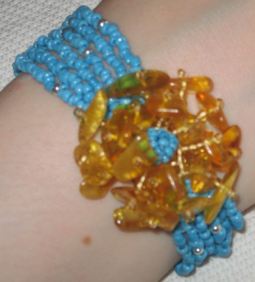Amber is a common souvenir from Latvia (the amber chips in this piece