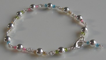 This one could look cute on a little princess :) 5 mm silver plated rounds, seed beads 0.6 mm silver plated copper wire.