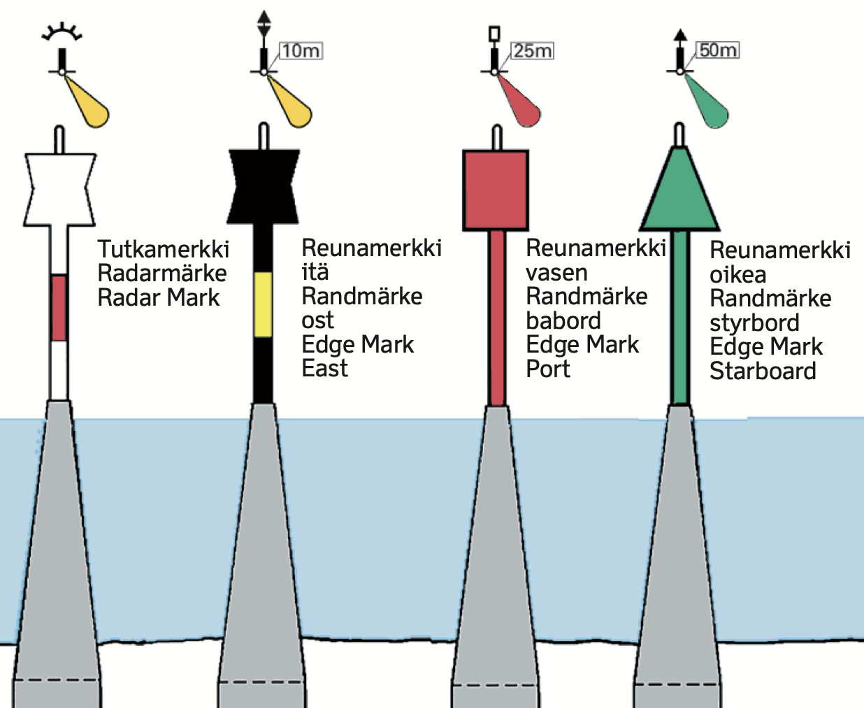Meri- ja karttamerkit on osattava, ennen kuin menee itsenäisesti vesille. Jos veneilee päivisin, on osattava ainakin päivällä näkyvät merkit.